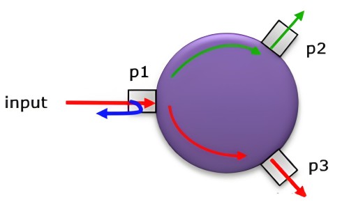 环行器是使能量沿特定方向流过端口的设备,与功分器不同。环形器可用于双工器,将Tx、Rx信号与TDD信号分开。环形器具有特定频率范围和性能,输入功率部分传输到输出端口,部分反射回输入端口。 -