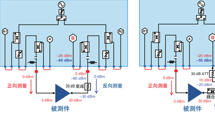 DUT输出端加大衰减器后怎样使用矢网进行校准和测试