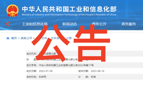 中华人民共和国工业和信息化部公告(2023年第17号)