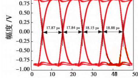 为了解决串行收发机在强信道衰减下误码过高的问题,采用 Duo-binary PAM4 编码技术设计了一款低功耗的112 Gibit/s SerDes 发射机。通过采用 Duo-binary PAM4 编码技术,解决了高速PAM4(Pulse Amplitude Modulation-4)信号衰减过大的问题;采用 CMOS 的1/4 速架构的4:1 合路器,降低了发射机的系统功耗;采用阻抗校准电路,提高了Duo-binary PAM4 发射机的线性度。该发射机采用CMOS 28 nm 工艺设计,0.9V电压供电。仿真结果表明:该发射机在20.9dB强信道衰减下,可以工作在112 Gibit/s,功耗为1.9 pJ/bit,且线性度达到88.3%。 -