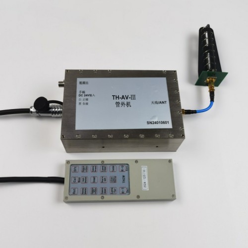 TH-AV-Ⅲ无线遥控仪,是一款工作在 2.4G到5.8G多频段的双向无线视频及数据 DATA 传输设备,设计主旨是为了满足管道探伤的任务目标。其超大的通信距离、坚固的硬软件设计、牢固的结构使其适用于野外及条件恶劣的工业环境,它即可以单独配套(管内机、管外机及控制手柄)应用,同时开放式的结构,几乎无延迟的实时性的视频传输,同时还可支持中继传输,构建架构简单、易于扩建升级的监控网络。本产品已有实际工程应用,其稳定可靠地运行对客户的工业生产运行发挥了很大的作用,得到客户一致肯定。